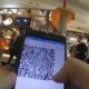 Osoba platí bezkontaktní kartou u platebního terminálu ve stánku s plážovým zbožím.